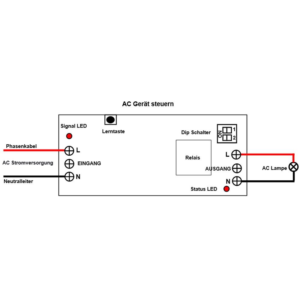 2) Verbinden Sie das Phasenkabel der AC Lampe an die Klemme L des