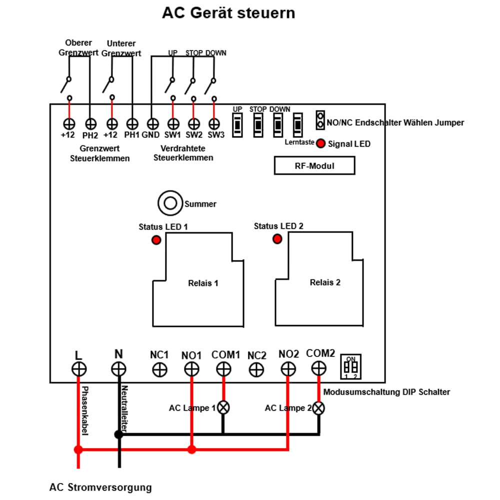 Beachten: Dieser Empfänger ist der trockene Relaisausgang, und kein DC/AC