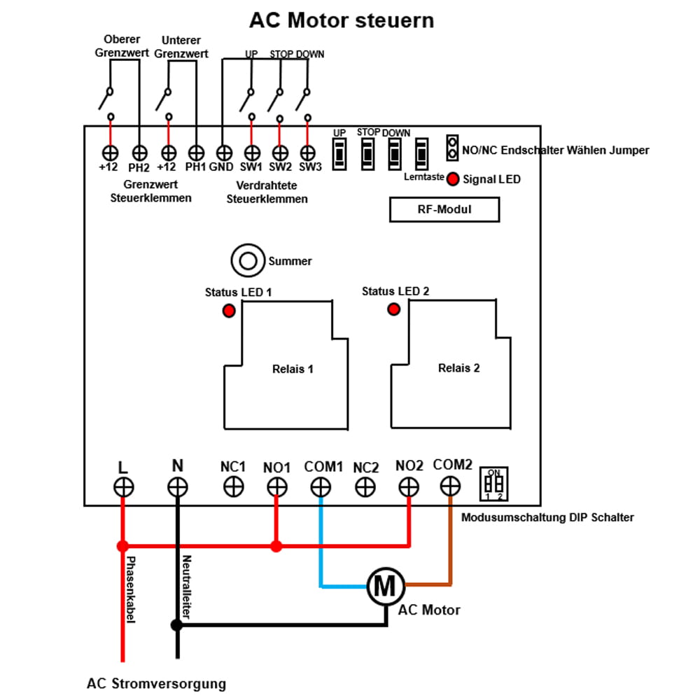 zur Steuerung DC und AC Geräte verwendet werden. Die Ausgangsklemmen sind NO