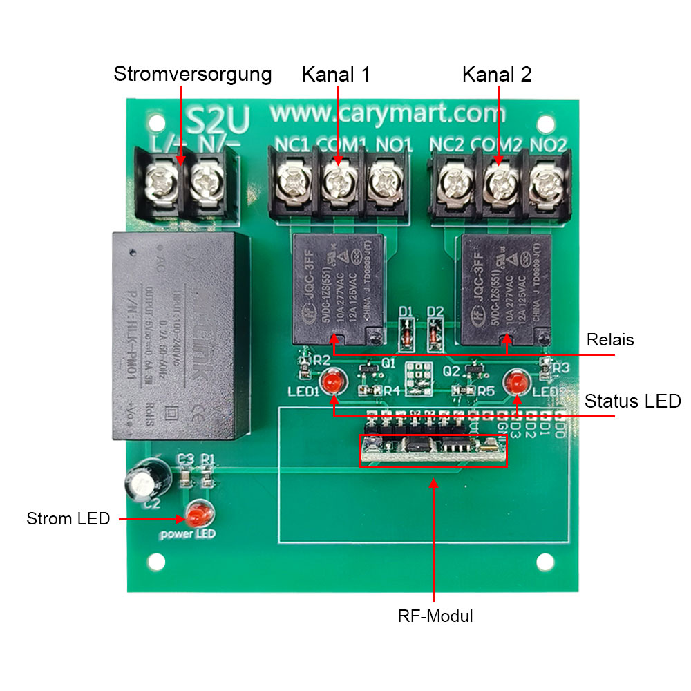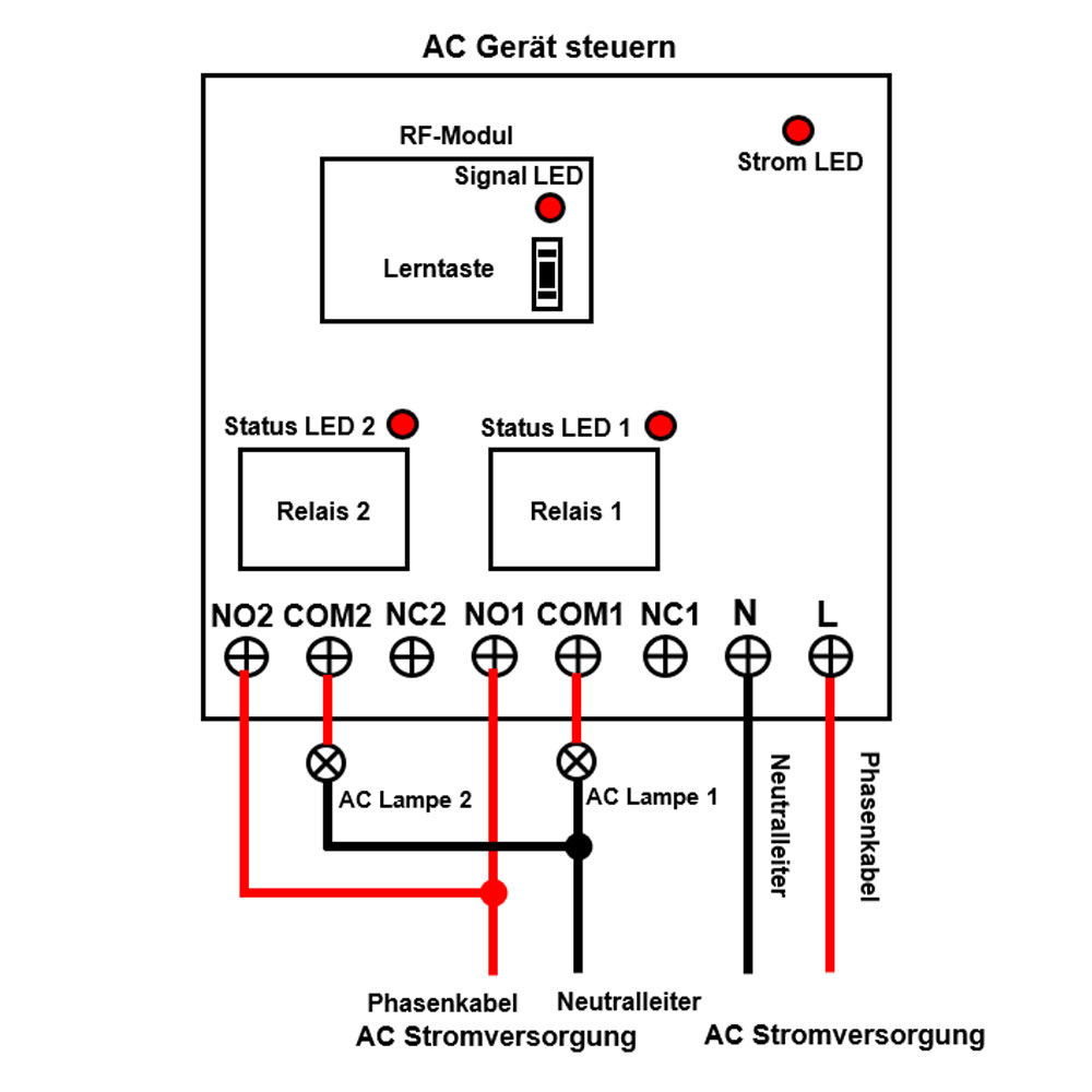 zur Steuerung DC und AC Geräte verwendet werden. Die Ausgangsklemmen sind NO